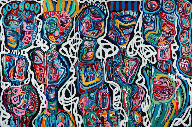 Mariam Dashti is a Bahraini intuitive artist whose work is defined by bold, vibrant colors and unique abstract figures. She graduated with a Masters Degree in Economics but rediscovered her life-long passion for art in 2019, marking the beginning of a new and transformative career. Since then, her work has drawn the attention of curators and collectors. Her work has been featured in several exhibitions, including the Bahrain Annual Fine Arts Exhibition. Through unconventional shapes and distinctive forms, Mariam explores themes of identity, human connection, and the unseen forces that shape our inner world.